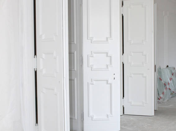 Nach Abschluss der Arbeiten war Boris Steiner besonders stolz auf die makellose seidenglänzende Optik der sanierten Kassettentüren, die inzwischen wieder das Prädikat „hochherrschaftlich“ verdienen. Die sorgfältige Aufarbeitung von alten Haus- und Innentüren ist ein spezielles Arbeitsgebiet und auch ein Aushängeschild des Malerbetriebes. Mit diesem Objekt hat das Malerteam seiner Referenzliste wieder ein eindruckvolles Beispiel hinzugefügt.